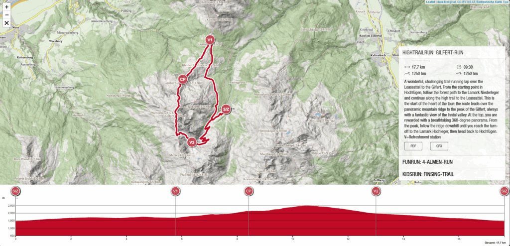The HightrailRun is for leisure and professional trail runners who compete on the attractive “Gilfert-Run”. A unique route over one of the most beautiful panoramic mountains in Tirol – especially the section from the Loassattel to the peak of the Gilfert makes every runner’s heart beat faster.